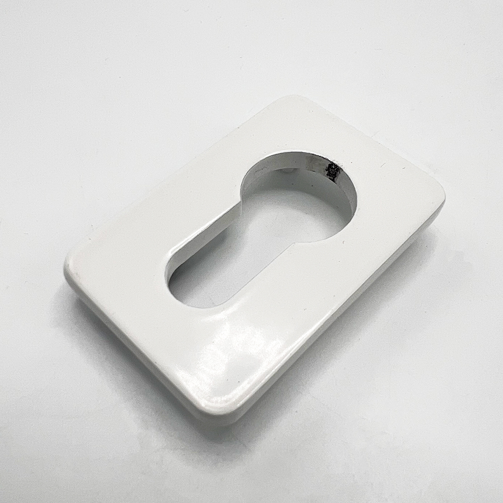 The escutcheons require no screw fixings. Each features two concealed fixing lugs which securely hold the plate in place when knocked into pre-drilled holes on the sash profile.