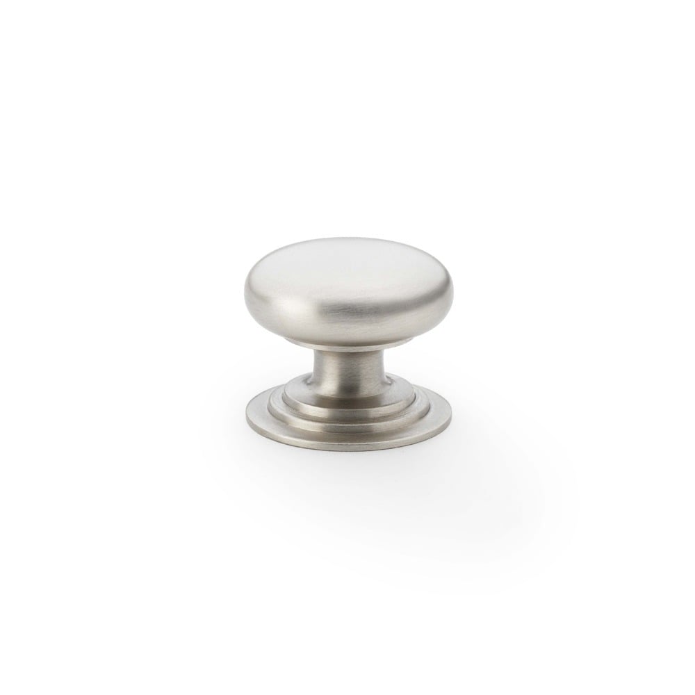 Alexander & Wilks AW825-32-SN Waltz Round Cupboard Knob On Stepped Rose – Satin Nickel Knob 32mm (LEAD TIME: 2-3 DAYS)