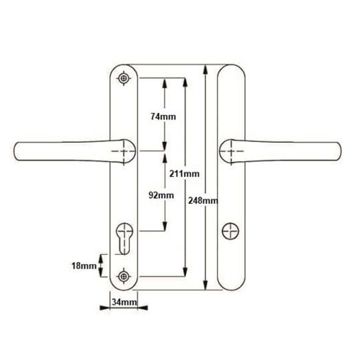 The distance between the fixing screws is 211mm with the bottom screw positioned 18mm below the euro profile cut-out.