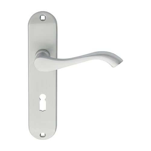 Lever on lock backplate. A solid curved sweeping lever on an elegant rounded backplate with a chamfered section at the top and bottom. The smooth and solid feel oozes quality making this a deluxe handle of choice. The other feature is the single hole top