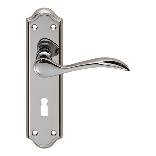 Lever on lock backplate. Classically styled curved lever on a shaped backplate, with detailing to both lever and backplate. Suitable for a more traditional doors. Comes with a 10 year mechanical guarantee and is Fire door rated.
