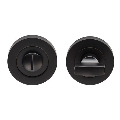 Thumbturn and release on a screw on rose, concealed fix. Designed to match the new finishes collection range of designer handles on round roses.