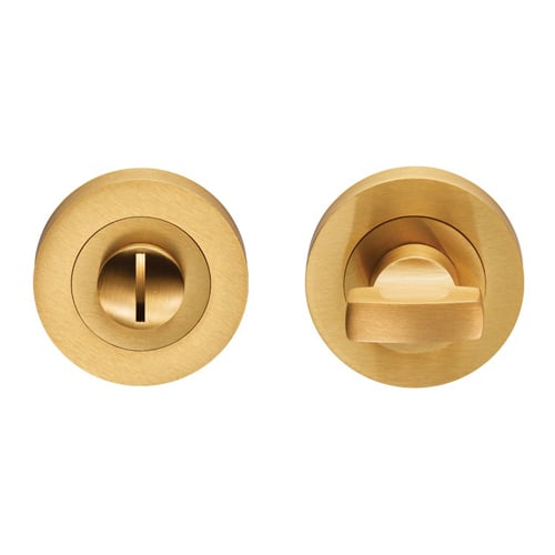 Thumbturn and release on a screw on rose, concealed fix. Designed to match the new finishes collection range of designer handles on round roses.
