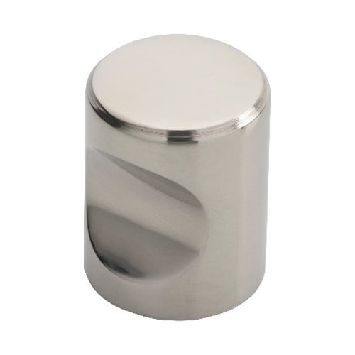A contemporary cylindrical knob with a central ergonomic scoop cut away making it easy to grasp. The scoop gives a comfortable feel and good torque when opening doors and drawers. Available in different finishes and sizes.
