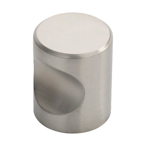 A contemporary cylindrical knob with a central ergonomic scoop cut away making it easy to grasp. The scoop gives a comfortable feel and good torque when opening doors and drawers. Available in different finishes and sizes.