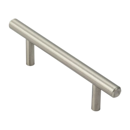 A straightforward T-Bar handle, small version. Round slender bar atop two inset cylindrical posts. Commonly used in modern interiors. Available in different finishes.