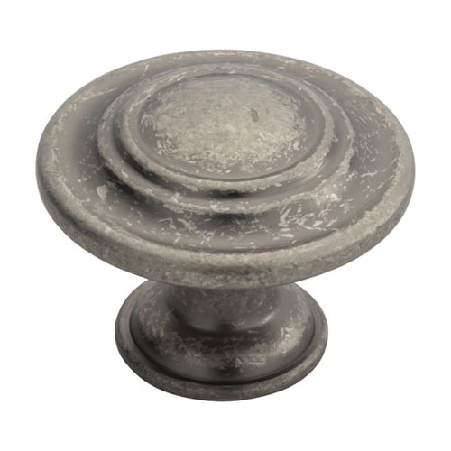 A traditional round ringed pattern knob on a stem rose making it easy to grasp. Provides a comfortable feel and good torque when opening doors and drawers.