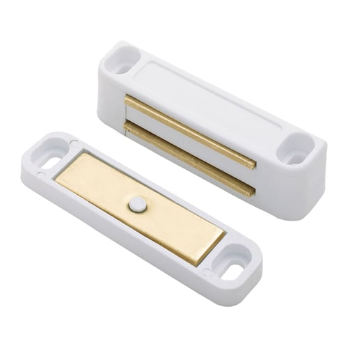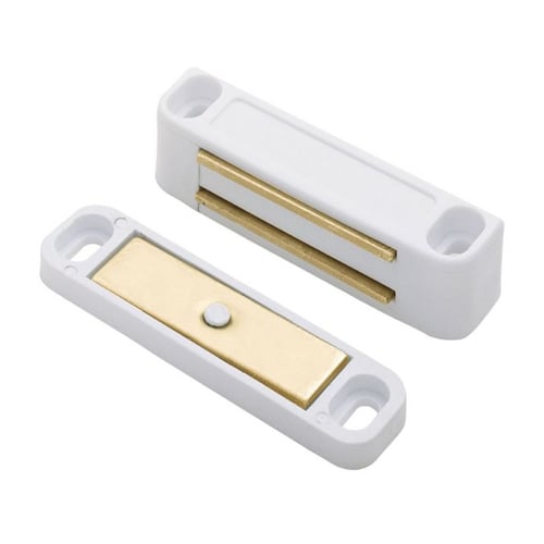 A nylon magnetic catch suitable for use on wardrobes, cupboards and lightweight internal doors.
