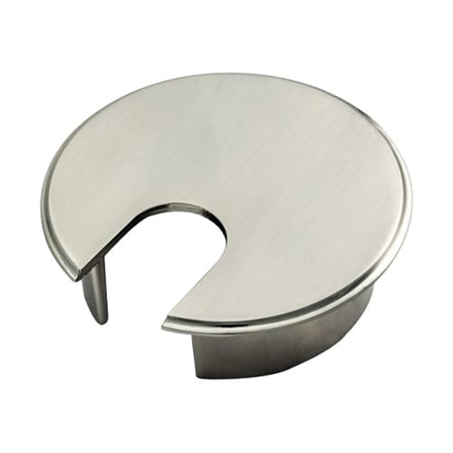 A recessed heavy pattern cable tidy adding a quality touch to perfectly cover any drilled holes for cables in worktops and desk tops.