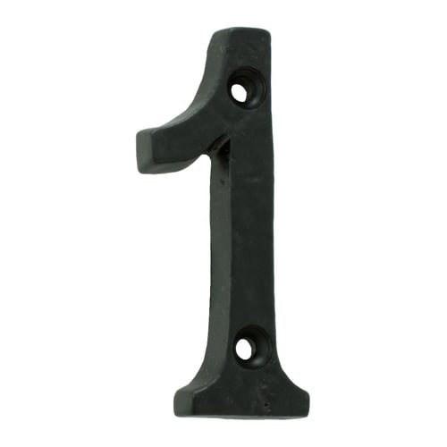 Numeral 1. Black antique iron face fix numerals. Two anchor points for secure fixing. Available in numbers from 0 – 9 it is the ideal cottage front door number. The sweeping, round-ended typeface provides clarity at a distance. Ludlow Black Antique is a t
