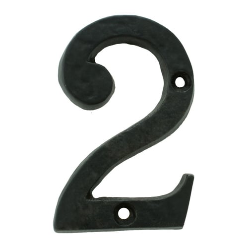 Numeral 2. Black antique iron face fix numerals. Two anchor points for secure fixing. Available in numbers from 0 – 9 it is the ideal cottage front door number. The sweeping, round-ended typeface provides clarity at a distance. Ludlow Black Antique is a t