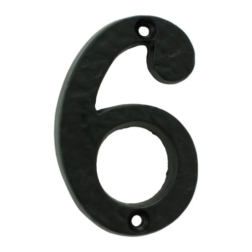 Numeral 6/9. Black antique iron face fix numerals. Two anchor points for secure fixing. Available in numbers from 0 – 9 it is the ideal cottage front door number. The sweeping, round-ended typeface provides clarity at a distance. Ludlow Black Antique is a