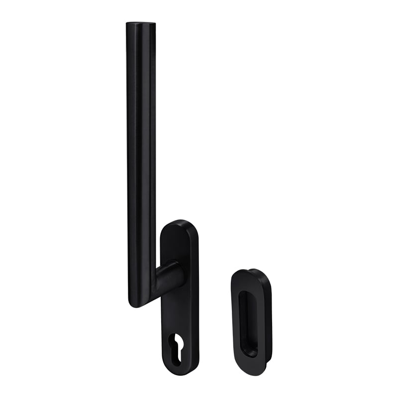 Contemporary, high quality lift and slide handle with keyhole and flush pull set