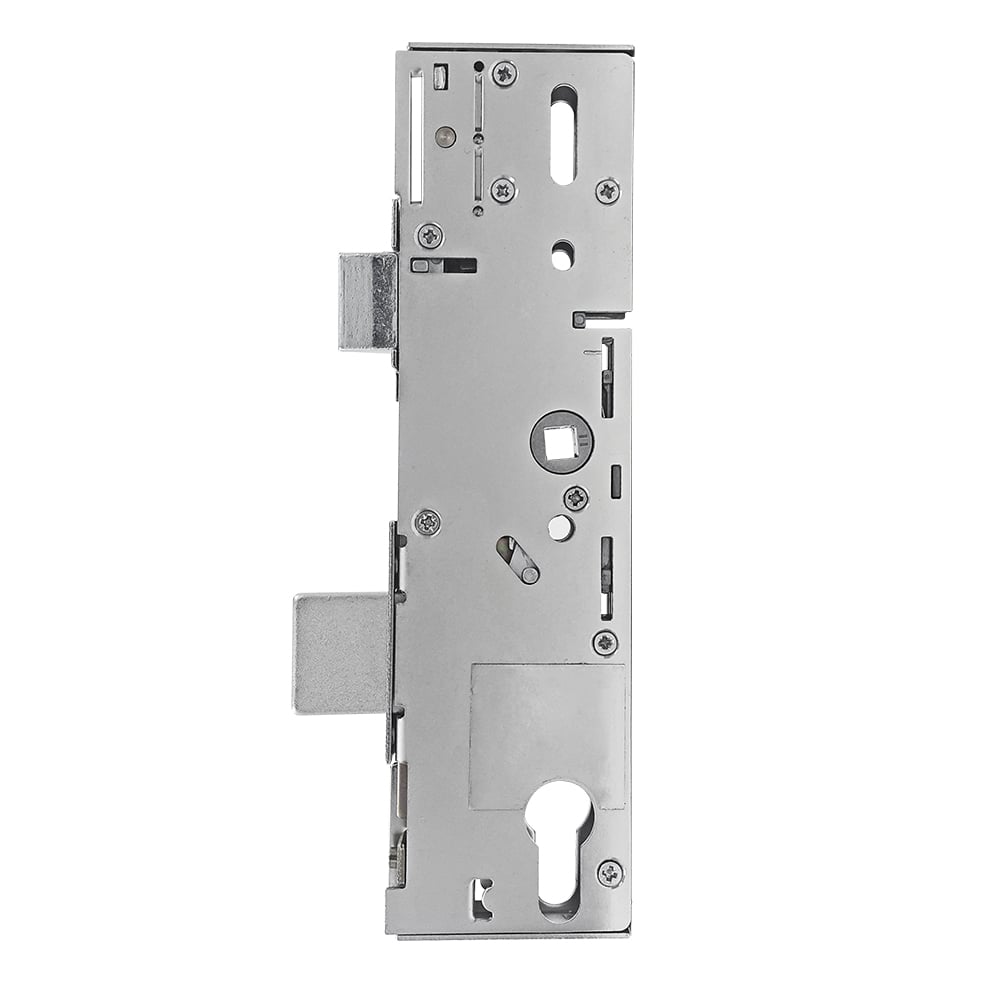 ERA multipoint door lock gearboxes feature a 24mm high latch (with 2 distinctive screws in the latch), a 30mm high deadbolt, and 61mm between them. Gearboxes are held on to the faceplate with 4 screws, which is unusual for a multipoint door lock. The first screw hole to the second measures 37mm, the second to the third measures 85mm, and the third to the fourth screw measures 43mm.