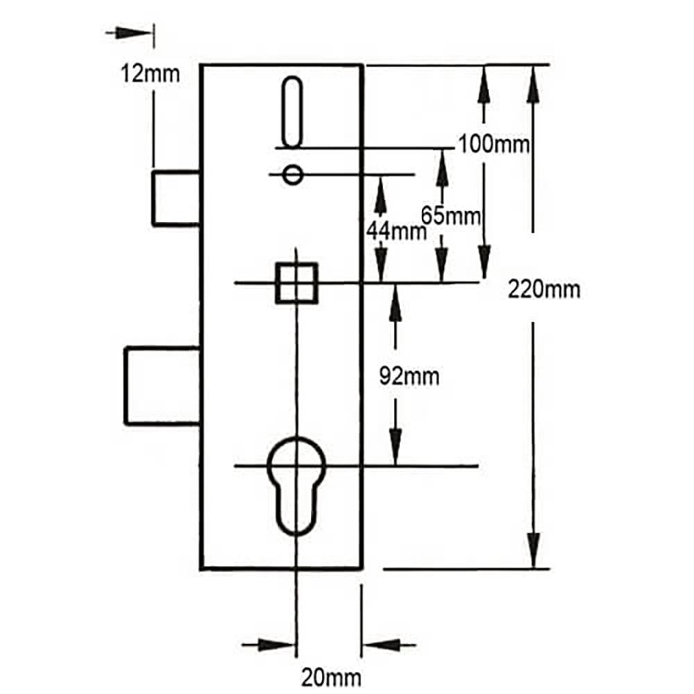 ERA multipoint door lock gearboxes are very distinctive, with a square design and no corner cut-outs. The overall length of the gearbox is 221mm and the width is the backset plus 18mm.