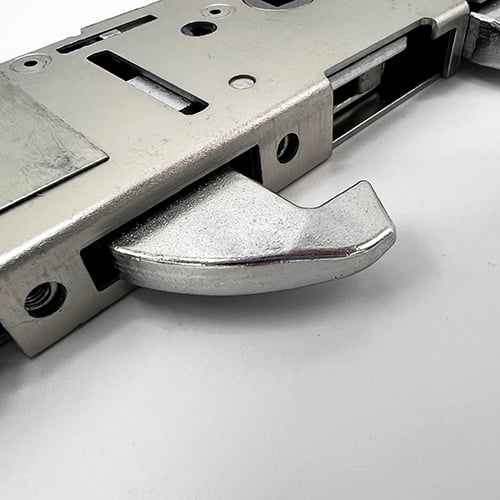 This gearbox accepts the ERA Invincible shaped cylinders and a converter piece to allow a euro to be used. The 35mm backset features a hook, rather than a deadbolt.