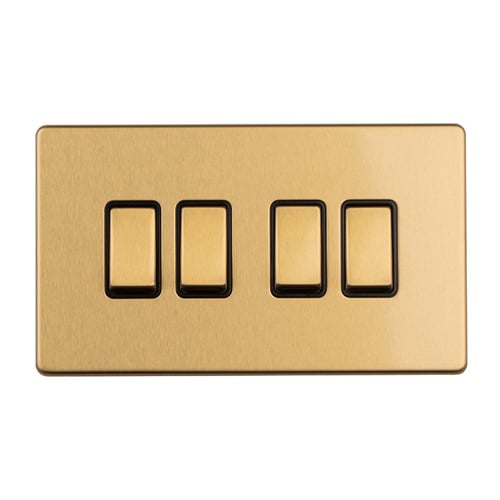 4 Gang 10Amp 2Way Switch Flat concealed Satin Brass Plate Matching Rockers