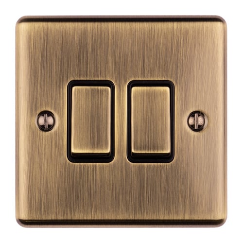 2 GANG 10AMP 2WAY SWITCH ANTIQUE ENHANCE RANGE BLACK TRIM