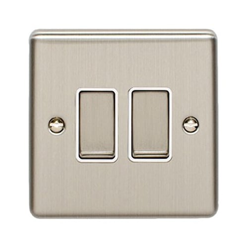 2 Gang 10Amp 2Way Switch Satin Enhance Range White Trim