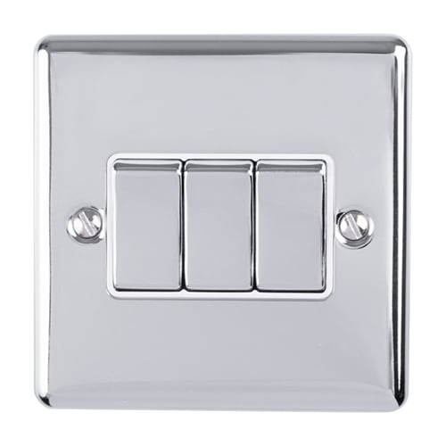 3 Gang 10Amp 2Way Switch Polished Chrome Enhance Range White Trim