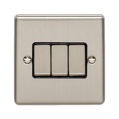 3 Gang 10Amp 2Way Switch Satin Enhance Range Black Trim