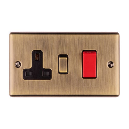 45AMP DP SWITCH WITH 13AMP SOCKET ANTIQUE ENHANCE RANGE BLACK TRIM