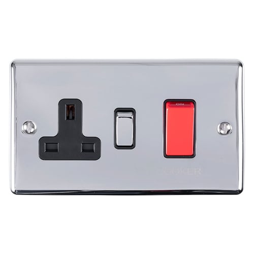 45Amp DP Switch With 13Amp Socket Polished Chrome Enhance Range Black Trim