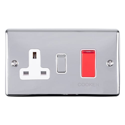 45Amp DP Switch With 13Amp Socket Polished Chrome Enhance Range White Trim