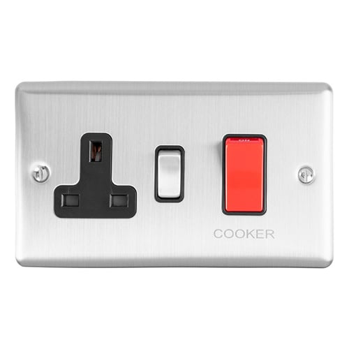 45Amp DP Switch With 13Amp Socket Satin Enhance Range Black Trim