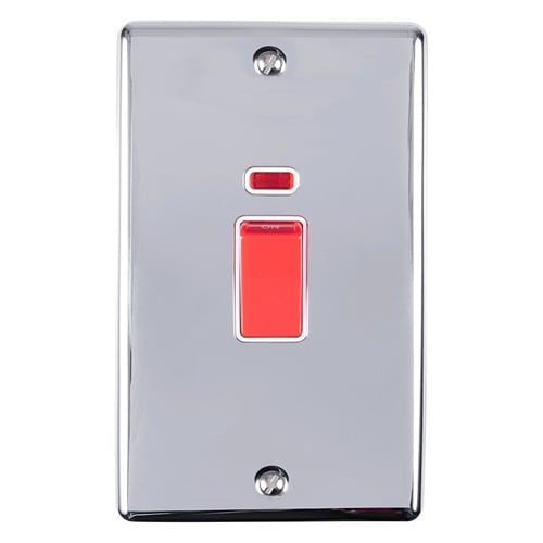 45Amp DP Switch With Neon Vertical Polished Chrome Enhance Range White Trim