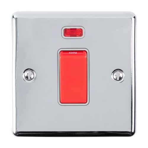 1 GANG 45AMP DP SWITCH WITH NEON POLISHED CHROME ENHANCE RANGE GREY TRIM