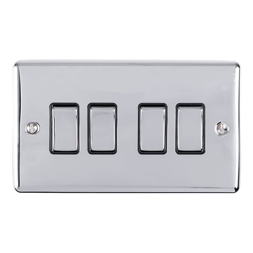 4 Gang 10Amp 2Way Switch Polished Chrome Enhance Range Black Trim
