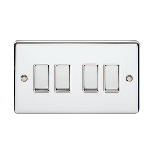 4 Gang 10Amp 2Way Switch Polished Chrome Enhance Range White Trim