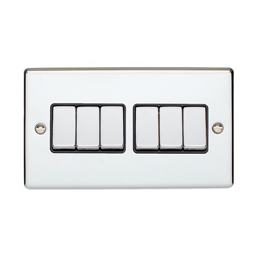 6 Gang 10Amp 2Way Switch Polished Chrome Enhance Range Black Trim