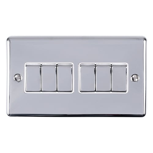 6 Gang 10Amp 2Way Switch Polished Chrome Enhance Range White Trim