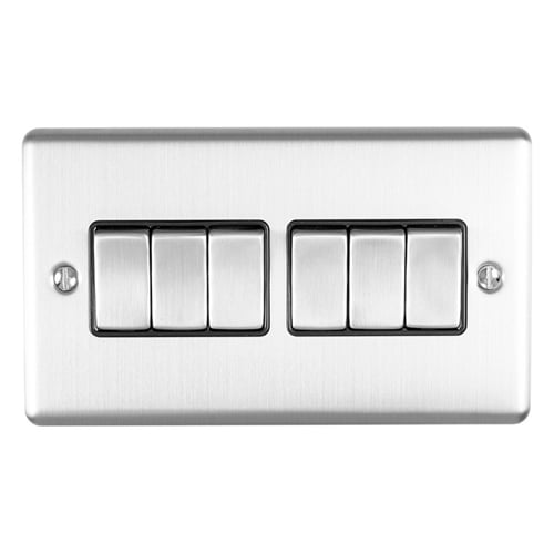 6 Gang 10Amp 2Way Switch Satin Enhance Range Black Trim
