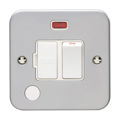 13Amp Switched Fuse Connection Unit Flex Outlet With Neon Metal Clad