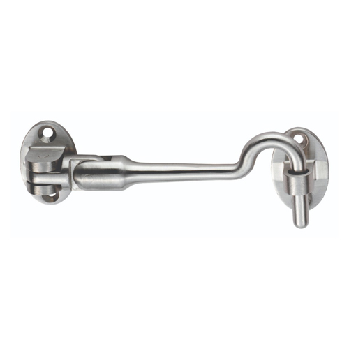 Silent Pattern Cabin Hook 100mm. Versatile hook and eye pattern. Most commonly used on doors and window shutters. It provides the perfect solution to restricting doors or gate movement, and can prove to be a more visually appealing option to that of the a