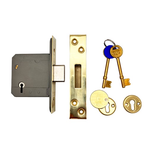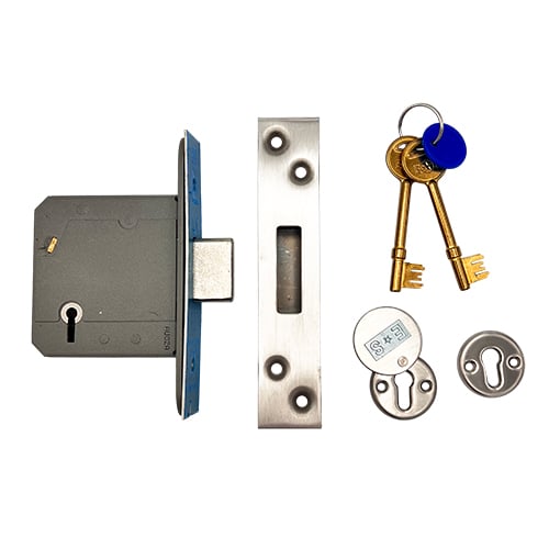High security 5 Lever Mortice Deadlock used as a matter of course by the national house builders. Kitemarked to British Standard 3621:2017. Supplied with 2 keys.