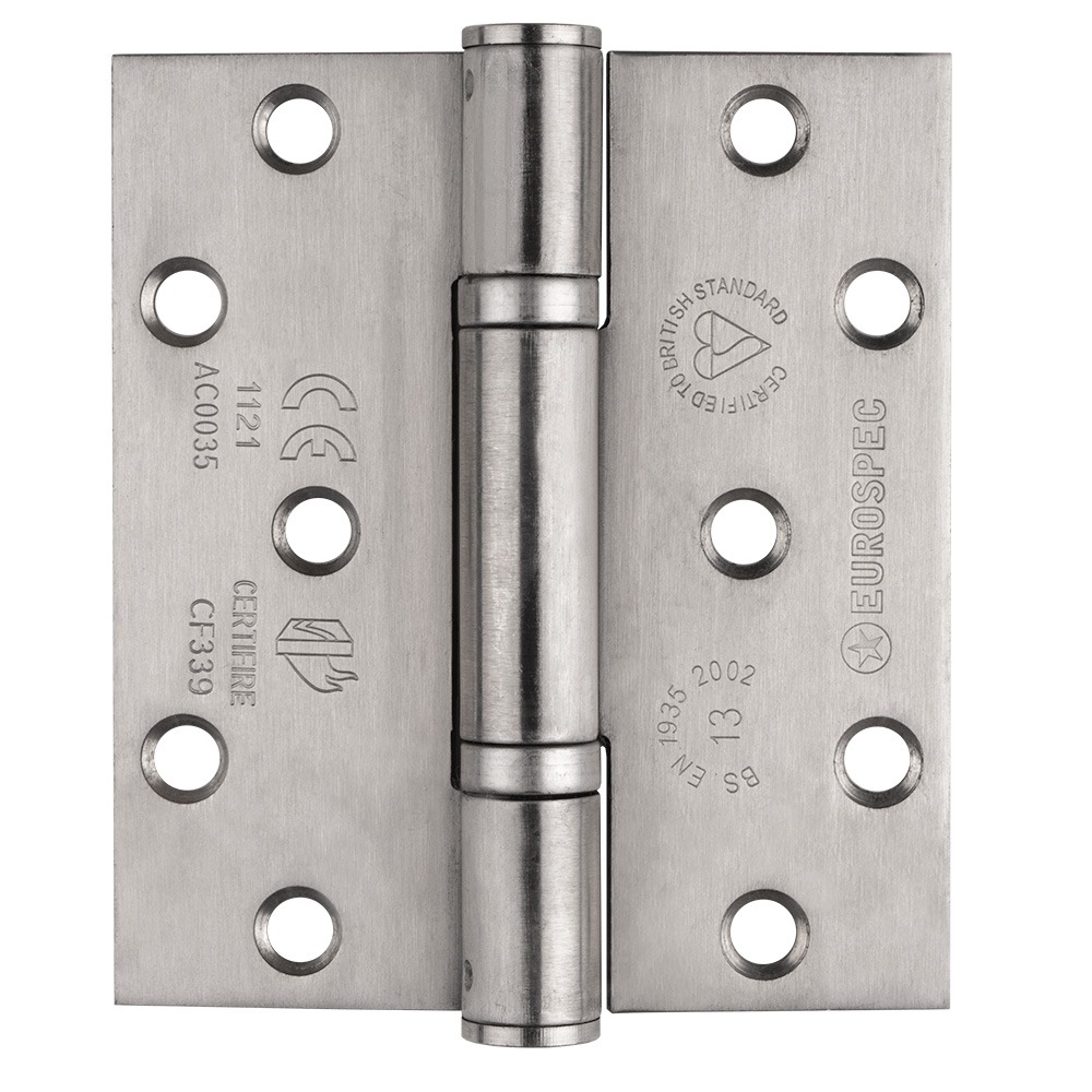 Grade 13 Thrust Bearing Hinge, Square (Max Load 120kg). Non removable pin. These are usually specified in heavy use commercial developments such as schools, hospitals, airports, public buildings. They carry a CE mark and are Certifire tested. BS EN 1935 r