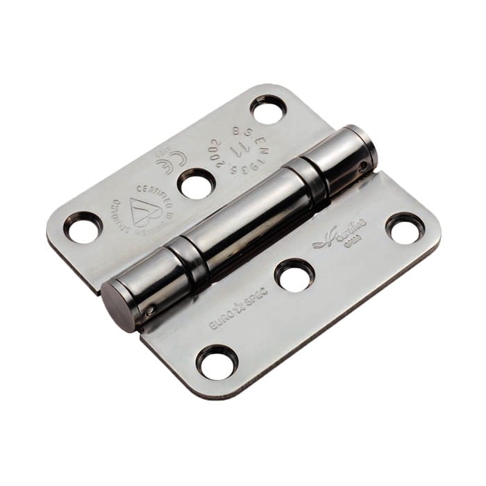 Grade 11 Ball Bearing Hinge, Radius corners. (Max Load 80kg). A popular type of door hinge. They have a CE mark and are Certifire tested. BS EN 1935 rated. This substantial premium hinge carries a 25 year mechanical guarantee. Suitable for industrial, com