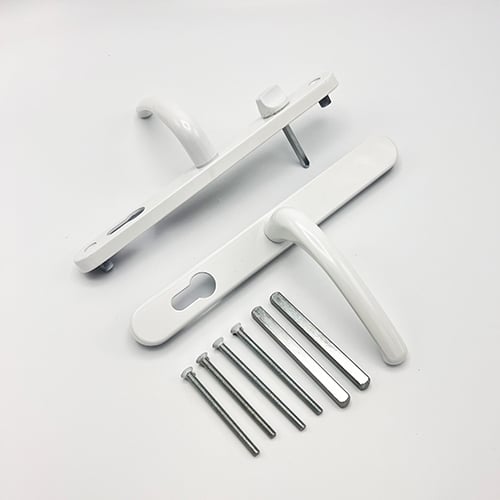 Farnham series handles to suit 68PZ Fullex locks. Supplied with screws and spindles to suit doors 44mm to 70mm thick. This is the snib version to allow the latch to be held back.