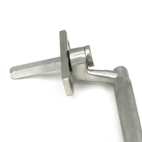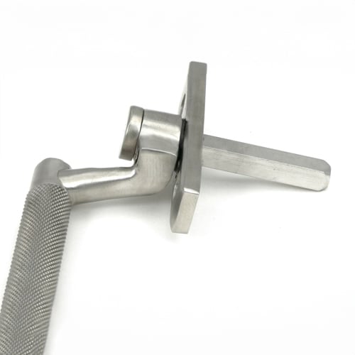 The Brompton suite features a textured, knurled surface. The industrial styling of the diamond pattern creates a modern range of products that can be used consistently throughout a property. Due to their slim fixing plates, these window handles can be fitted on any type of window including uPVC and timber.