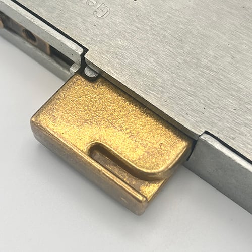 Nightlatch Reversal: The lock is supplied as a lift lever function, it is fitted with a travel pin on the surround of the spindle hole. This must be broken in order to convert to a split spindle function.