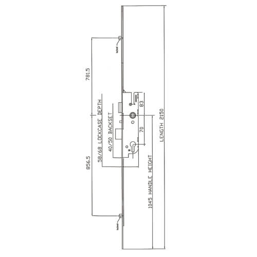 This GU Ferco Fercomatic multipoint door lock features 2 Rollers, 1 Deadbolt & 1 Latch.