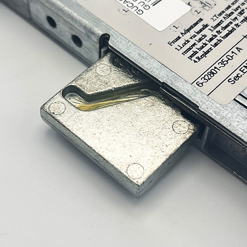 New style GU locks can be differentiated from their old-style equivalents by the shape at the top of the gearbox. Old-style locks have the top corner removed, whereas new versions feature a vertical groove to help with bolts for handles. The two gearboxes are not compatible, so a new-style gearbox will not fit on an old-style multipoint lock.
