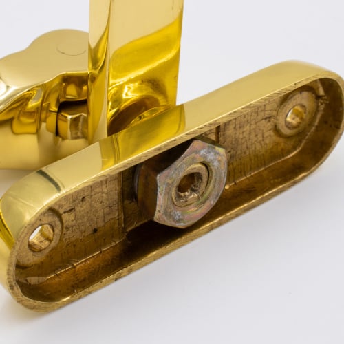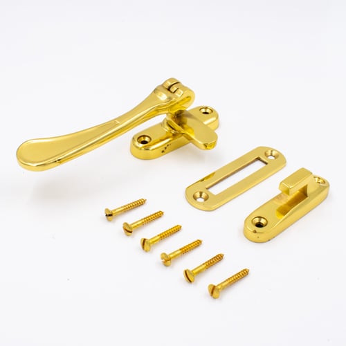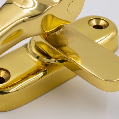 A traditional casement fastener used on wooden windows.