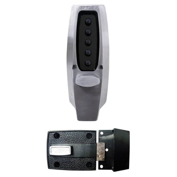 Heavy duty digital door locks with surface rim nightlatches. This version has code lengths of 1-5 digits, with 1000+ possible code combination options.