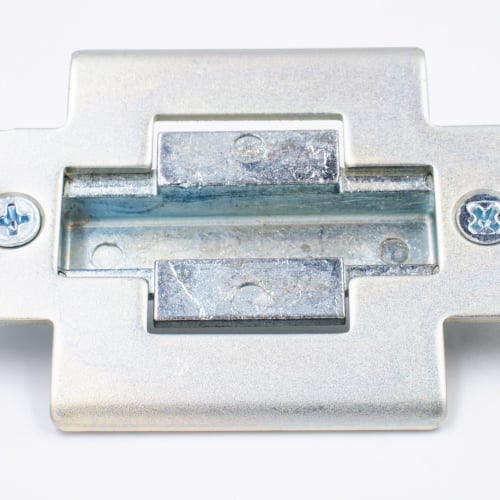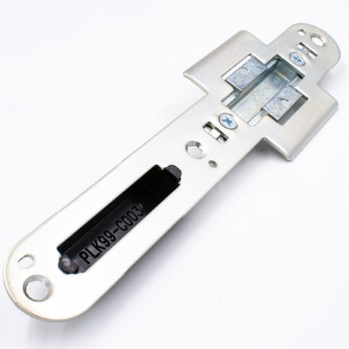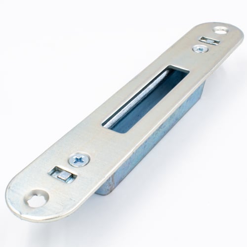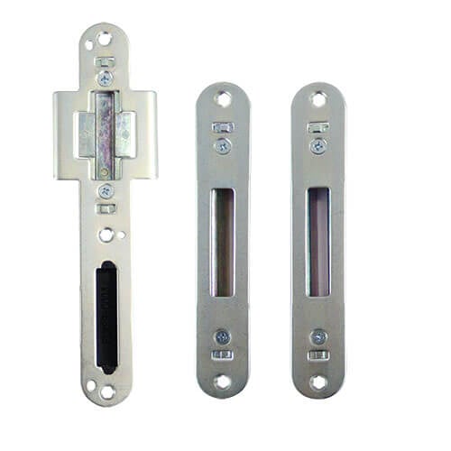A non-handed latch and deadbolt centre strike with a pair of hookbolt keeps suitable for multipoint locks fitted to timber and composite doors.