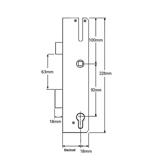 This Lockmaster multipoint gearbox features a latch and deadbolt with a key wind feature.